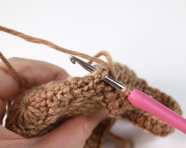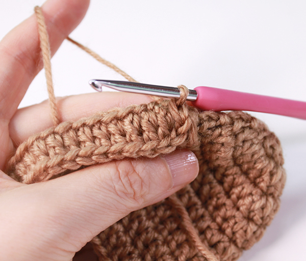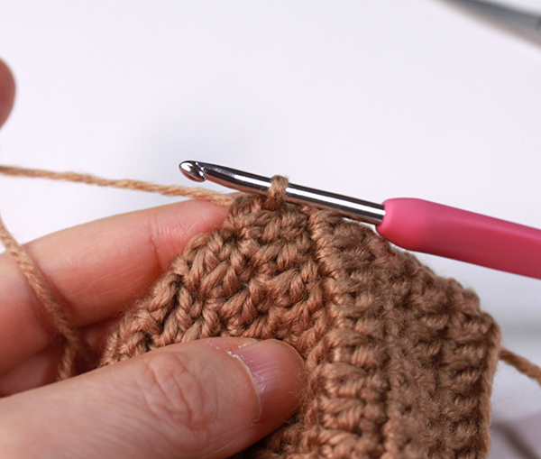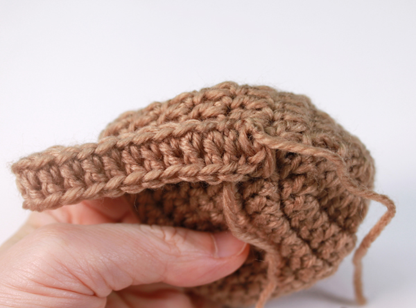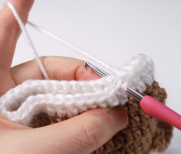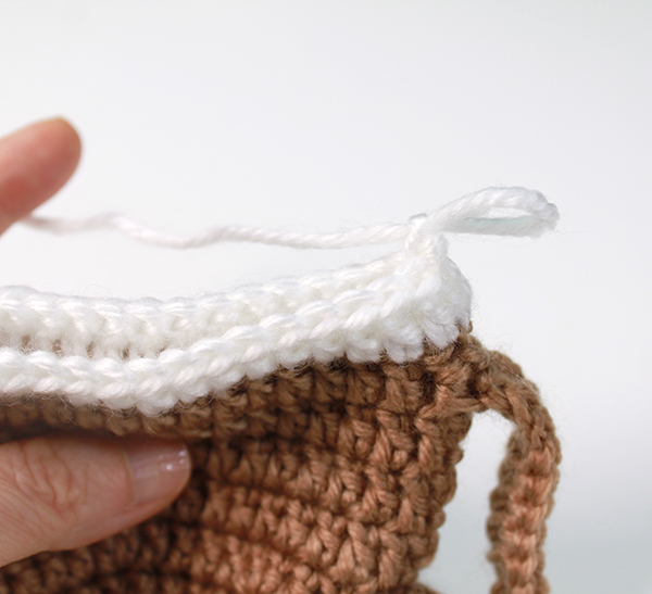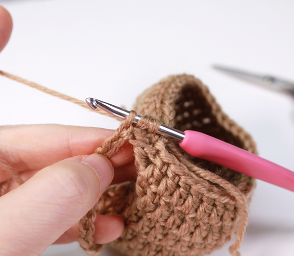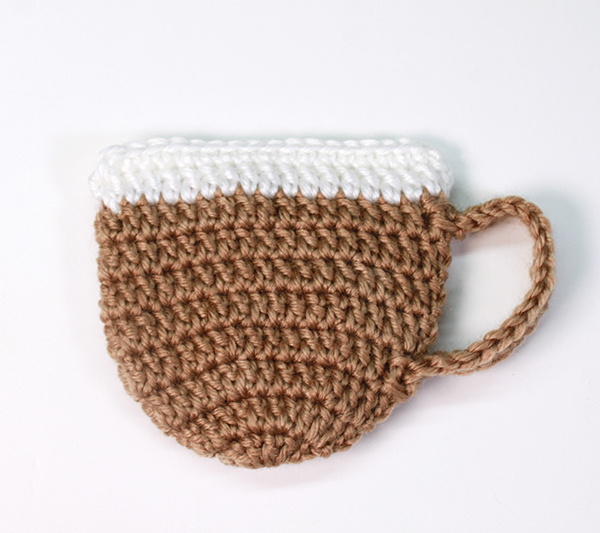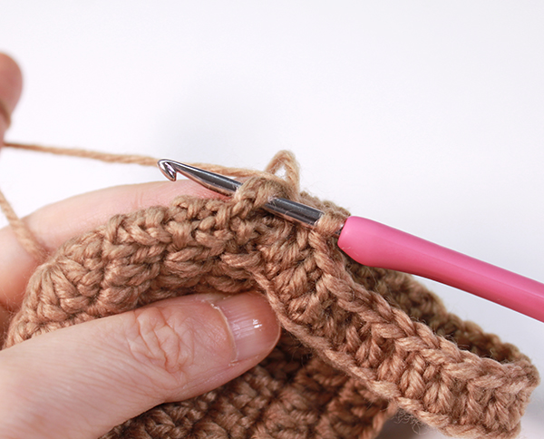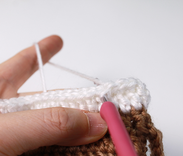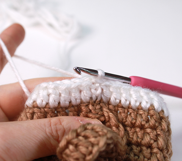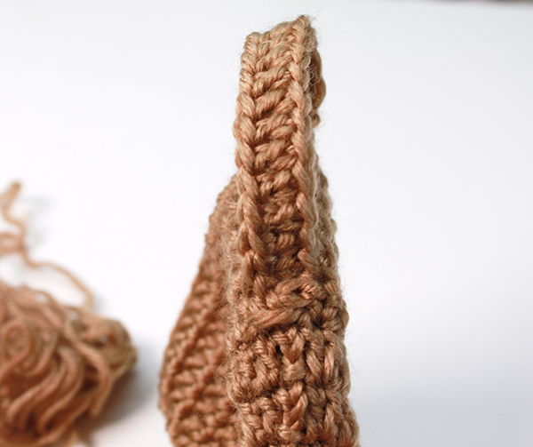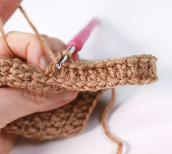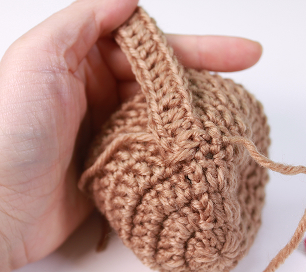 6. 컵을 반으로 접어서 코를 맞잡아 짧은 뜨기를 떠줍니다.