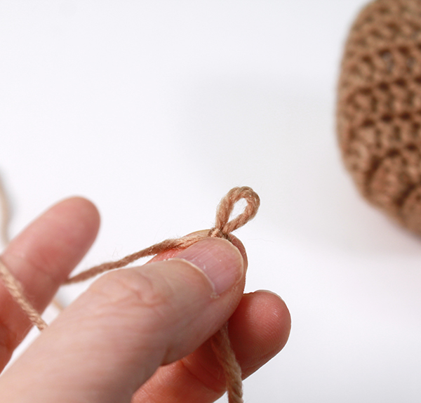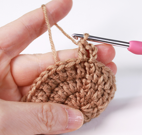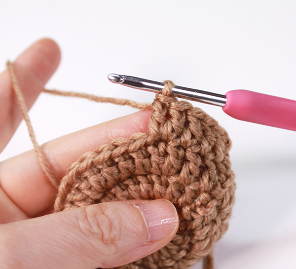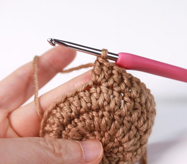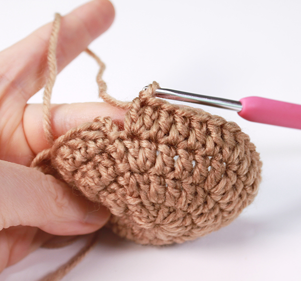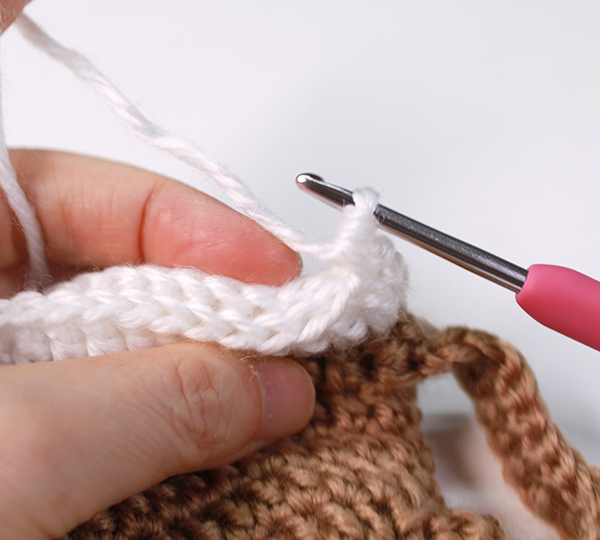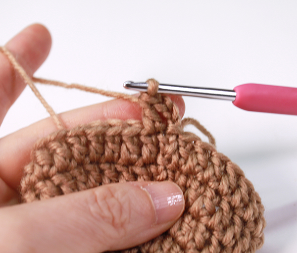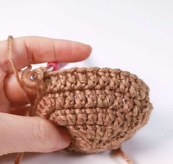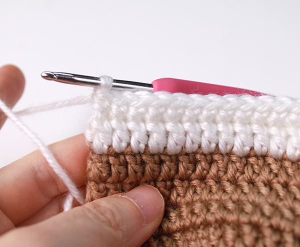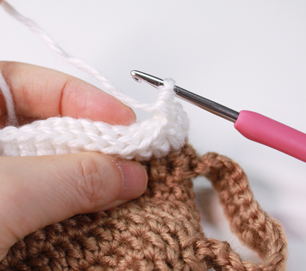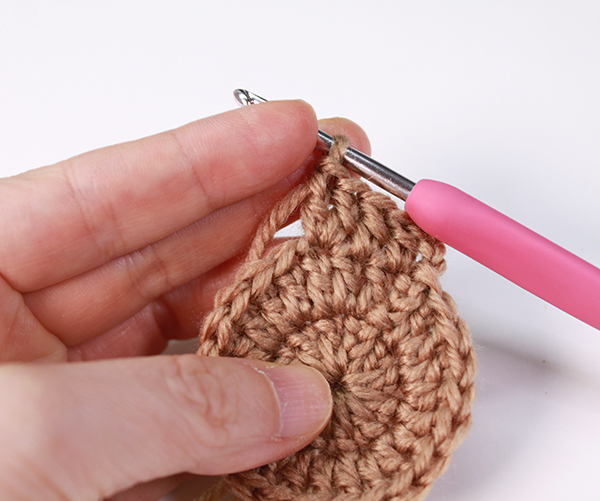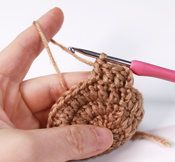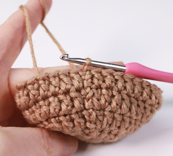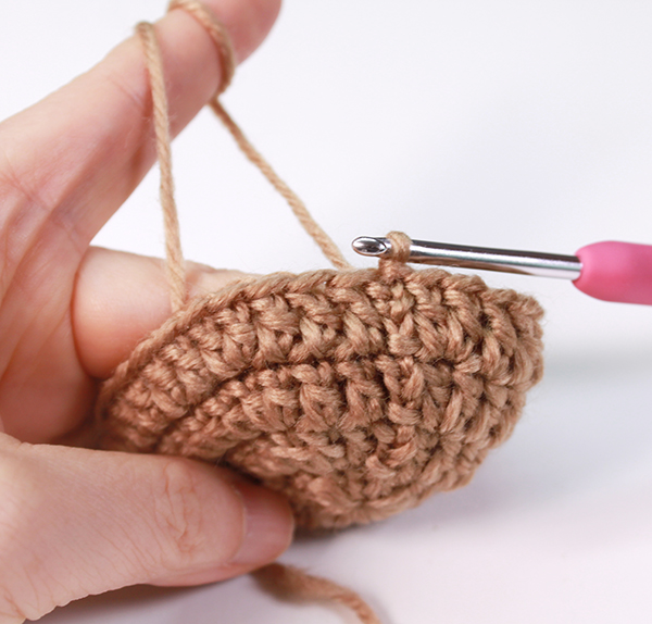 6. 컵을 반으로 접어서 코를 맞잡아 짧은 뜨기를 떠줍니다.