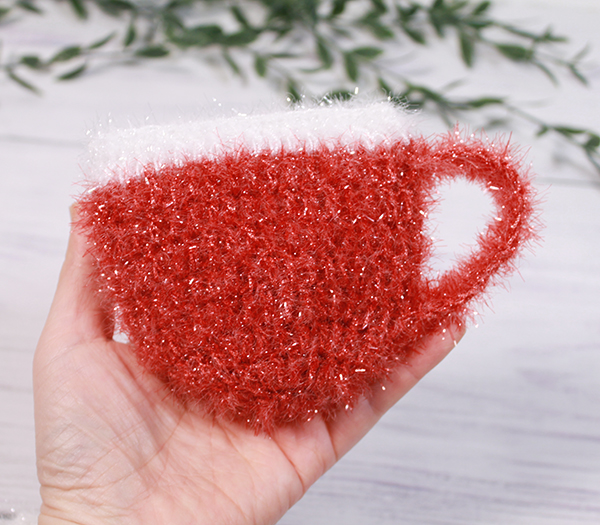 칼라는 흰색과 머그컵 색깔 두 가지 색깔만 준비하면 되고, 칼라별로 머그컵 수세미를 만들어 보아도 좋아요.