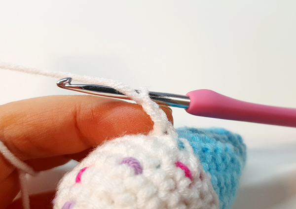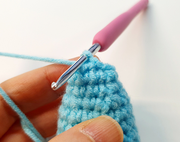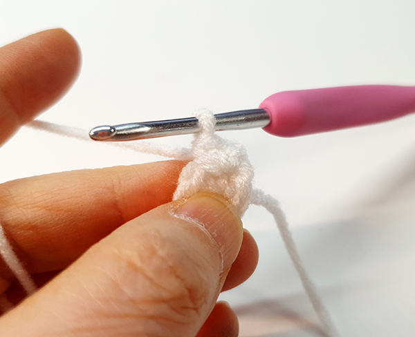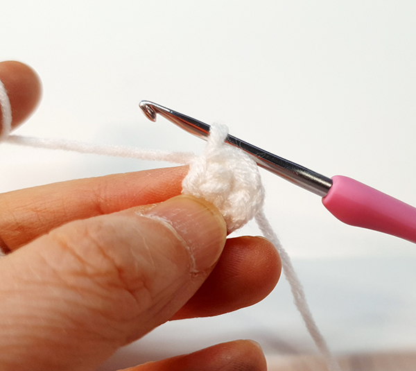 4. 첫 번째 짧은뜨기 코에 빼뜨기 해줍니다.