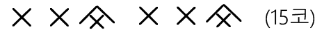 2. 한코에 하나, 다음 코에 두 개 이 세트를 5번 반복해 주면 총 15코가 됩니다.