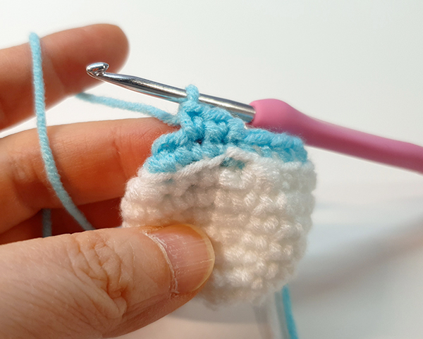 3. 같은 방식으로 한코에 한 개씩 늘림없이 짧은뜨기 해주는 것을 총 3단 떠줍니다.