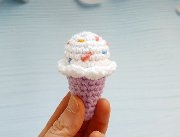 5. 매듭을 지은뒤 아이스크림 안쪽으로 실 끝을 넣어 마무리해줍니다.