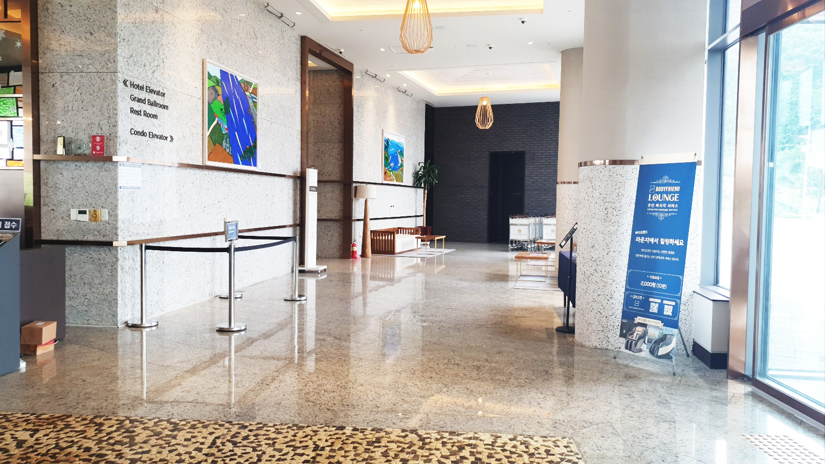 호텔로 올라가는 엘리베이터, 리조트로 올라가는 엘레베이터 따로 있으니 잘 보고 타시는 게 좋아요