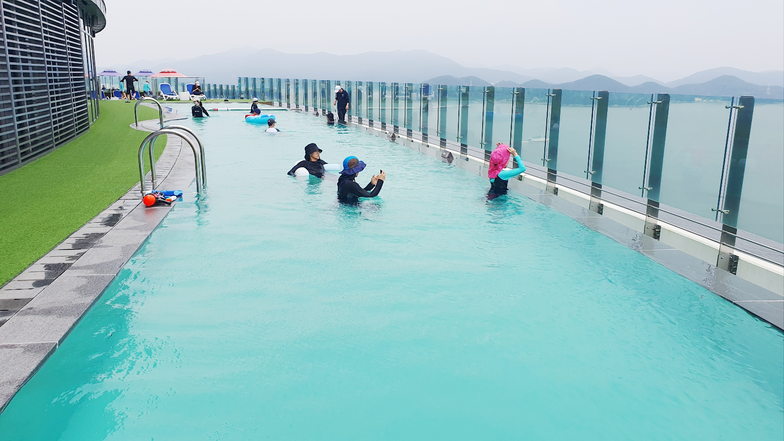 19층에 있는 인피니티풀이라고 하는 수영장을 이용하시려면 위에서 설명했던 대로 먼저, 로비 옆에 있는 곳에서 미리 예약하셔야 합니다.