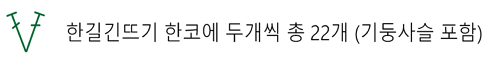 < 한길긴뜨기 한코에 한 개씩 4번 + 한길긴뜨기 두 코 모아 뜨기 + 한길긴뜨기 한코에 한 개씩 5번 + 한길긴뜨기 두 코 모아 뜨기 + 한길긴뜨기 한코에 한 개씩4번 + 한길긴뜨기 두 코 모아 뜨기> = 두 번 반복해 줍니다.