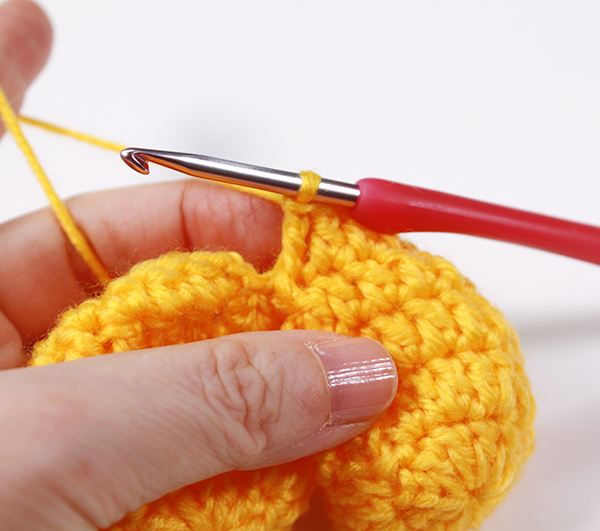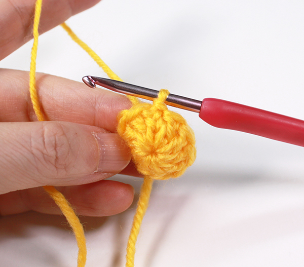 3. 원형코 실을 당겨 조여준 뒤 기둥사슬 3번째 코에 빼뜨기 해줍니다.