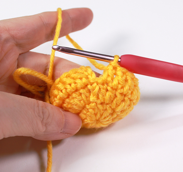 기둥사슬 옆 한길긴뜨기 코에도 한길긴뜨기를 두 개 넣어 줍니다. (한길긴뜨기 한코에 두 개씩 반복)
