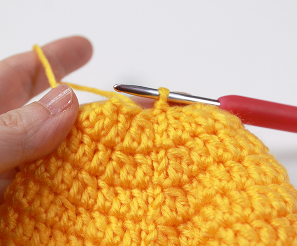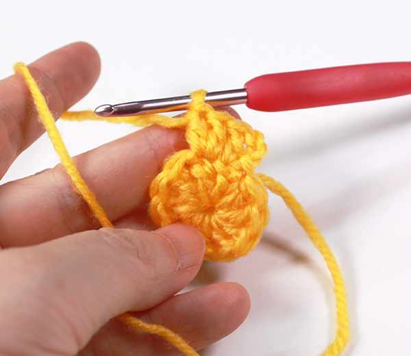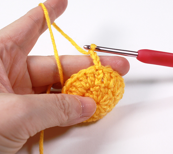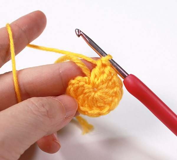 3. 원형코 실을 당겨 조여준 뒤 기둥사슬 3번째 코에 빼뜨기 해줍니다.