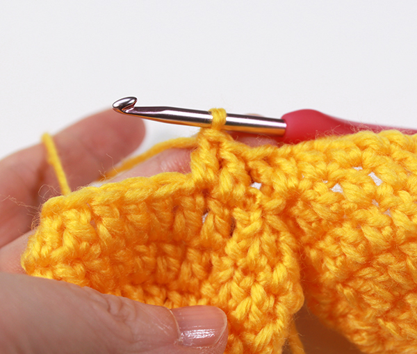 3. 한 길 긴뜨기 한코에 한 개씩 5번 + 한길긴뜨기 모아 뜨기