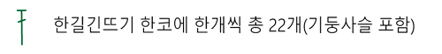 매 코바다 한길긴뜨기 한개씩 넣어주어 기둥사슬포함 총 22코를 만들어 줍니다.