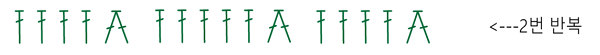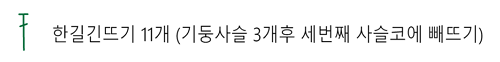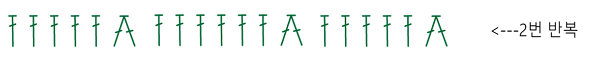 < 한길긴뜨기 한코에 한 개씩 4번 + 한길긴뜨기 두 코 모아 뜨기 + 한길긴뜨기 한코에 한 개씩 5번 + 한길긴뜨기 두 코 모아 뜨기 + 한길긴뜨기 한코에 한 개씩4번 + 한길긴뜨기 두 코 모아 뜨기> = 두 번 반복해 줍니다.